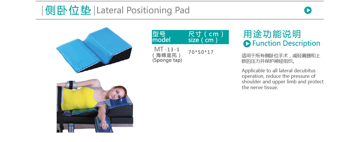 【產(chǎn)品用途】:適用于所有側(cè)臥位手術(shù),減輕肩膀和上肢的壓力并保護(hù)神經(jīng)組織